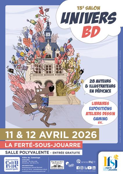 Avis aux fans de BD ! Le Salon Univers BD revient les 11 et 12 avril 2026 avec 28 auteurs en dédicace, libraires, expositions, ateliers dessin et gaming, caricatures et animations pour toute la famille. Rendez-vous à la salle polyvalente. Entrée gratuite.